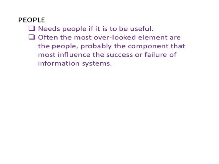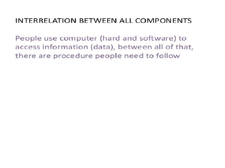 Examples(Cont. . ) • Customer relationship systems track customer activities, purchasing trends, product defects and customer inquiries. They allow customers to interact with companies for service, product feedback and problem resolutions. • Business intelligence systems predict future sales patterns, summarize current costs and forecast revenues. • Knowledge management systems analyze, organize and share knowledge with organization members for innovation and improved performance.