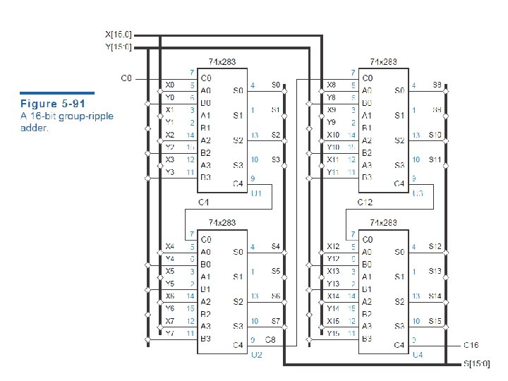 Ripple Adders • A ripple adder is slow, since in the worst case a carry must propagate from the least significant full adder to the most significant one. • This occurs if, for example, one addend is 11 … 11 and the other is 00 … 01. • Assuming that all of the addend bits are presented simultaneously, the total worst-case delay is