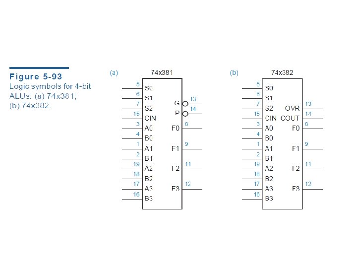 Comparator Structure • EXCLUSIVE OR and EXCLUSIVE NOR gates may be viewed as 1 -bit comparators. • The 74 x 86 XOR gate can be used as a 1 -bit comparator. The active-high output, DIFF, is asserted if the inputs are different. • Given enough XOR gates and wide enough OR gates, comparators with any number of input bits can be built.