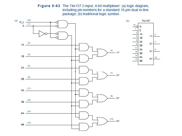 Multiplexers • A multiplexer is a digital switch—it connects data from one of n sources to its output. • There are n sources of data, each of which is b bits wide, and there are b output bits. In typical commercially available multiplexers, n = 1, 2, 4, 8, or 16, and b = 1, 2, or 4. There are s inputs that select among the n sources, so s = [log 2 n]. An enable input EN allows the multiplexer to “do its thing”; when EN = 0, all of the outputs are 0. • Applications: in computers between the processor’s registers and its arithmetic logic unit.