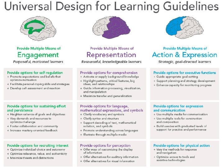 Reflection Time: UDL Observation • What will you see when teachers are effectively using UDL strategies when working toward knowledge outcomes? (Remember. . . lots of choice!) • What will you see when teachers are effectively using UDL strategies when working toward competencies? (scaffolding, scaffolding. . )
