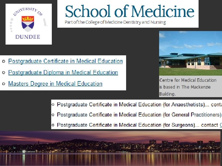 The Edinburgh Declaration (1988) Actions within the medical school 1. Widen educational settings 2. National health needs as the context for curricula 3. Active learning methods (tutorial, self-directed and independent) for continuity of learning throughout life 4. Require professional competence (not mere knowledge recall) 5. Train medical teachers as educators 6. Prevention of illness and health promotion 7. Integration of science and clinical practice 8. Selection of applicants, for non-intellectual as well as intellectual