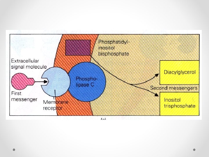 Segundos mensajeros Calcio y fosfoinositidas. Estimulación de la hidrolisis de fosfoinositida. Hormonas, neurotransmisores y factores de crecimiento activan esta vía. Estimulación de una enzima de membrana, fosfolipasa C (PLC) El diacilglicerol esta limitado a la membrana, donde activa una la proteína cinasa C. La concentración alta de calcio promueve su unión con la calmudulina que regula actividad de enzimas.