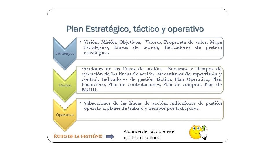 CLASIFICACION DE LOS PLANES • Periodo de realización: • Corto plazo, menor o igual a un año • Mediano plazo, de uno a tres años • Largo plazo, mayor de tres años