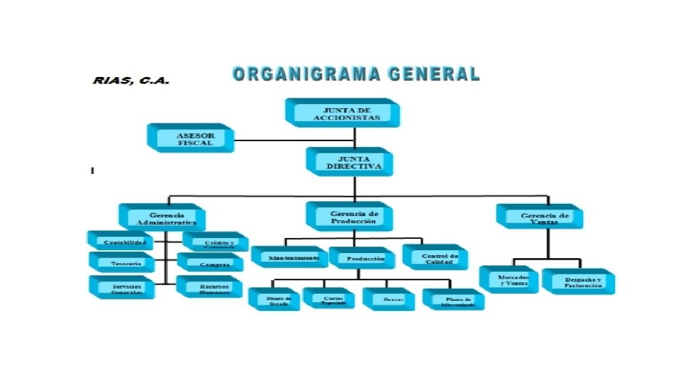 Organigrama • Son replantaciones de la estructura formal de una organización, representa las funciones, niveles jerárquicos, obligaciones y autoridad