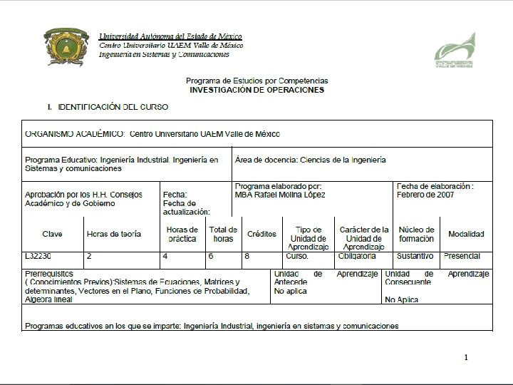 Guion explicativo • Es importante que el docente explique de manera detalla cada uno de los pasos para la solución de los problemas de programación lineal y las ventajas y desventajas que presentan cada uno de los métodos. • El documento debe ser explicado en forma de presentación ya que contiene animaciones para presentar la información que permite al alumno comprender cada uno de los pasos y como aplicar cada uno de los métodos en la solución de un PL, así como la interpretación de los resultados obtenidos.