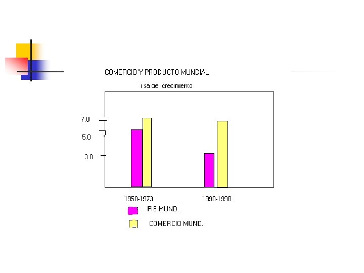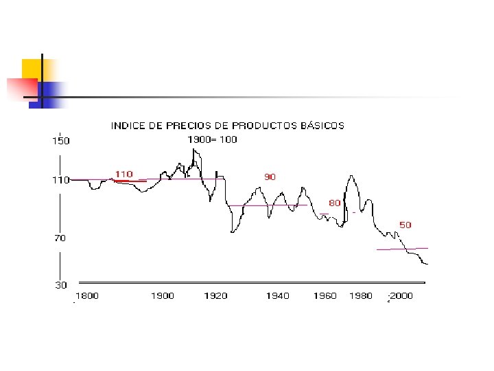 Reconversión Tecnológica (cont). n n Deterioro de las ventajas comparativas tradicionales de nuestros países: La robótica reemplaza al trabajo barato y la ingeniería de materiales sustituye a las materias primas convencionales. (azúcar por isoglucosa; Camisas al minuto con láser; proteína vegetal para forraje, sustituida por proteína unicelular obtenida de fósiles). Con ello se refuerza la caída tendencial de largo plazo de deterioro de los términos de intercambio.