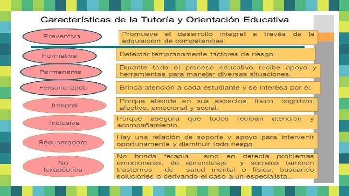 1. Contribuir a la individualización de la educación 2. Contribuir al carácter integral de la educación favoreciendo el desarrollo de todos los aspectos de la persona 3. Favorecer los procesos de madurez personal, de desarrollo de la propia identidad y sistema de valores y de toma de decisiones. 6
