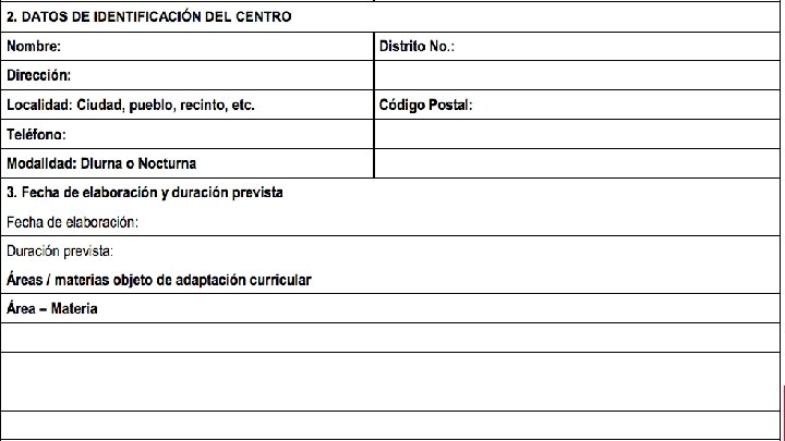 Datos de identificación del estudiante. Datos de identificación del Centro Educativo. Fecha de elaboración y duración prevista. Profesionales implicados en la elaboración del DIAC
