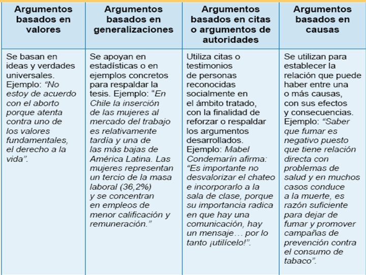 ¿Y sobre qué se puede argumentar? Técnicas de argumentación: Existen diversos tipos de argumentos que podemos utilizar para persuadir, convencer y demostrar una idea o punto de vista. A continuación, desarrollaremos algunas: