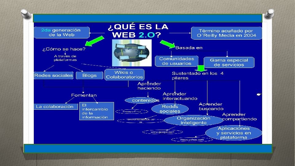 ¿Qué es la Web 2. 0? • El término Web 2. 0 comprende aquellos sitios web que facilitan el compartir información, la interoperabilidad, el diseño centrado en el usuario y la colaboración en la World Wide Web. Un sitio Web 2. 0 permite a los usuarios interactuar y colaborar entre sí como creadores de contenido generado por usuarios en una comunidad virtual, a diferencia de sitios web estáticos donde los usuarios se limitan a la observación pasiva de los contenidos que se han creado para ellos.
