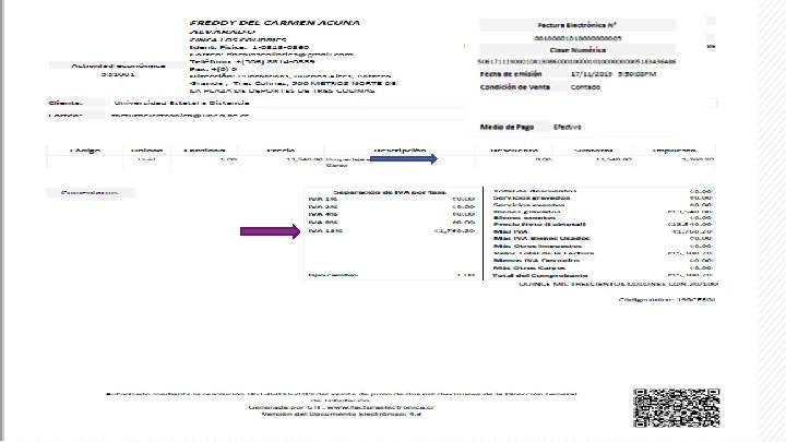 Para el respaldo de la devolución del IVA, por eso se requiere tener claro lo siguiente: 1. A que se debe el gasto. (ACADEMICO, PROYECTO, INVESTIGACION, EXTENSION) 2. Unidad presupuestaria que ejecuta la compra. 3. Incorporar en donde se pueda editar la factura, el correo electrónico UNED de la persona que realiza el gasto, esto por cuanto será la que debe de aceptar o rechazar la factura mientras se determina el proceso mas idóneo de acuerdo a lo indicado por la DTIC, quien esta desarrollando el sistema de recepción de facturas.
