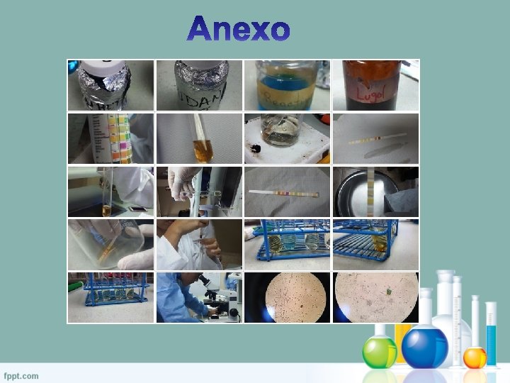 Materiales Definición Tiras reactivas Es un instrumento de diagnostico básico que tiene por finalidad detectar, durante un examen rutinario de orina. Papel de filtro Esta constituido por derivados de celulosa y permite el manejo de p. H Probeta Es un instrumento volumétrico que consiste en un cilindro graduado de vidrio que permite contener líquidos y sirve para medir volúmenes de forma aproximada Gradilla Herramienta que forma parte del material de laboratorio y se utiliza para sostener y almacenar tubos de ensayo Muestra de orina Una muestra limpia es un método de recolectar una muestra de orina para su análisis. Este método se usa para evitar que los gérmenes del pene o la vagina ingresen a una muestra de orina Tubos de ensayo es parte del material de vidrio de un laboratorio de química.