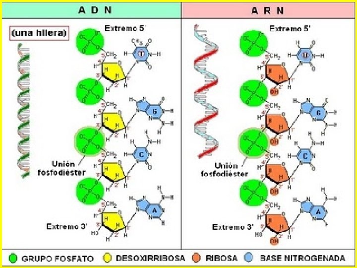 • ★ El azúcar puede ser desoxirribosa (en ADN) o ribosa (en ARN).