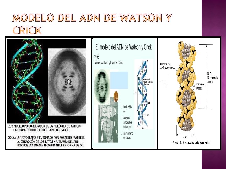 2. 1. 4 MODELO DEL ADN DE WATSON Y CRICK FIGURA 11. un giro completo de la cadena ADN mide 34 angstrom y tiene 10 nucleótidos. El diámetro de la doble cadena es de 20 angstrom Figura 12. estructura química del ADN, de Watson y Crick.