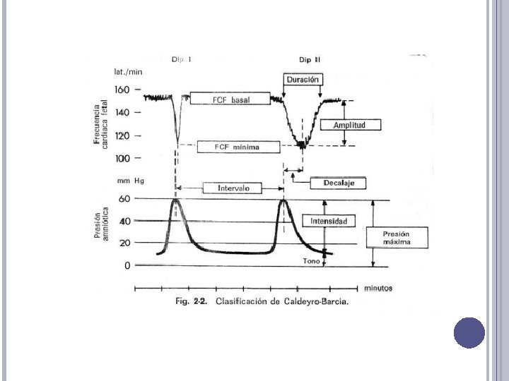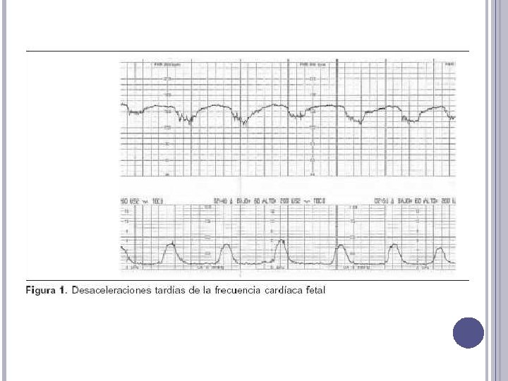 CUADRO CLÍNICO. Alteraciones en la FCF Taquicardia • >160 lpm • El corazón fetal trata de compensar la hipoxia al aumentar # de contracciones Bradicardia • <120 lpm • Por esfuerzo sostenido y alteraciones metabólicas fetales, el corazón disminuye la frec. de contracciones Desaceleraciones tardías • DIP II