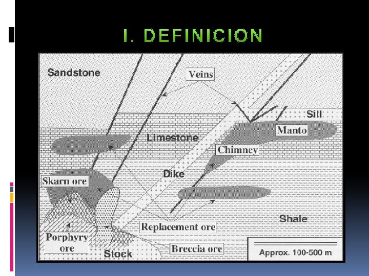CONTENIDO I. Definiciones Proceso de formación en tiempo y espacio II. Profundidad de formación III. Mineralogía de los skarn IV. Fluidos mineralizantes, reacciones y equilibrio V. Petrogénesis y entornos tectónicos de los depósitos skarn VI. Ubicación de acuerdo a la tectónica de placas VII. Zonación de los depósitos skarn VIII. Depósitos skarn de Sn, W, Cu, Pb – Zn, Mo IX. Conclusiones