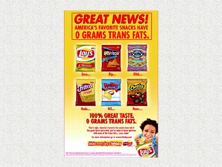 Alimentos fortificados con -3 / -6 Ácidos grasos -3 : pescado, aceites de semillas de girasol, maíz, soja, frutos secos oleaginosos (nueces, almendras). ü Contribuyen a disminuir el colesterol y triglicéridos sanguíneos ü Disminución de la formación de trombos o coágulos ü Disminución de enfermedad cardiovascular (Cortés, 1997)