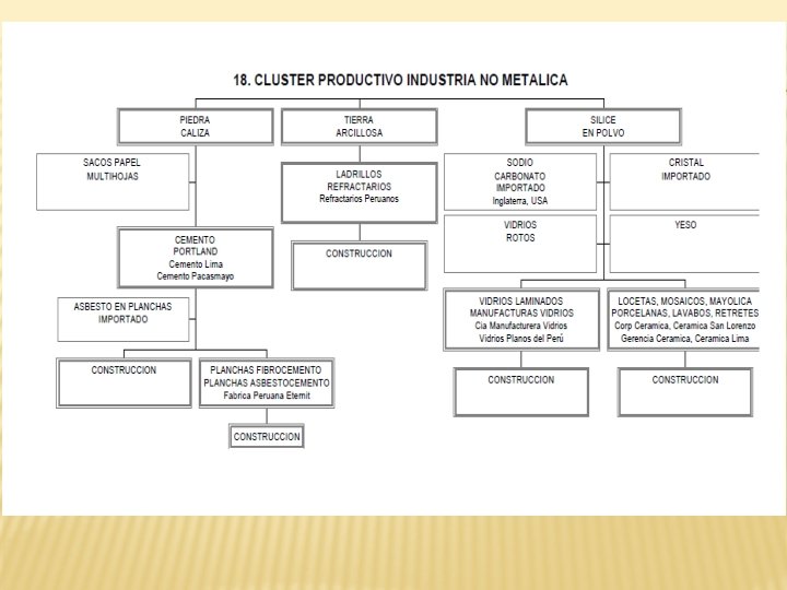 PROCESO PRODUCTIVO DE LA INDUSTRIA DEL VIDRIO LAMINADO PREPARACIO N DE LAS MEZCLAS RECEPCION DE MATERIA PRIMA FUSION DE LA MEZCLA HORNO DE GAS O PETROLEO ALMACENAMIENT O • PESAJE • MEZCLADO • TRANSPORTE • CINTAS TRANSPORTADORAS: ESCANER HOMOGENEIZADOR: REFINACION DEL VIDRIO : RODILLO SUPERIOR: DOS TANQUES RODILLO ULTRADURO DE CARBURO DE BOLFRAMIO: RODILLOS: INSPECCION: TINTA DE VIDRIO: ALMACEN: