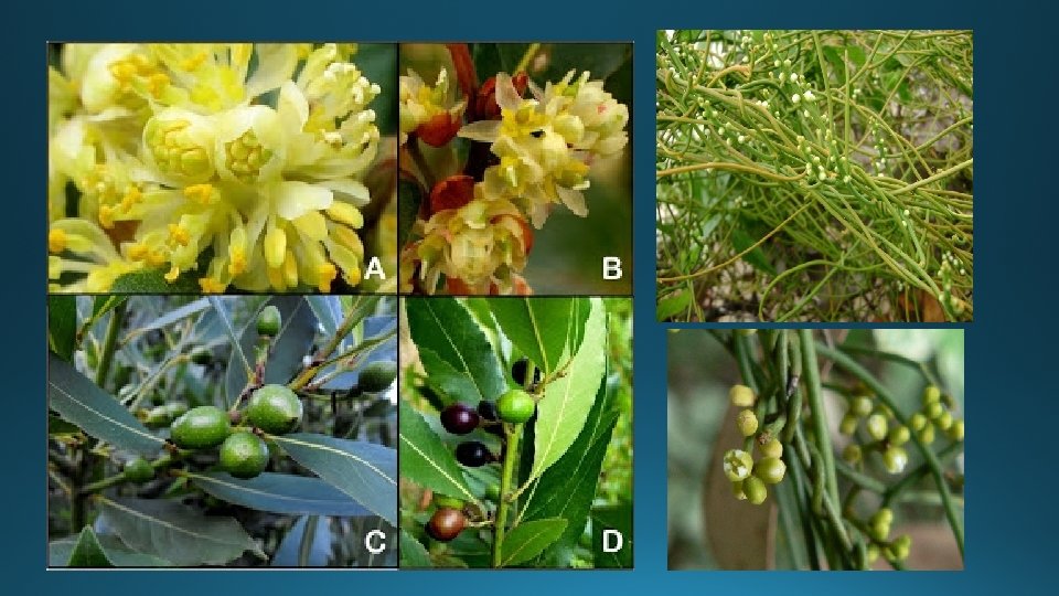 ORDEN LAURALES FAMILIA LAURACEAE El nombre de esta familia se hace familiar entre nosotros si nos referimos a Persea americana Miller, denominada con el nombre de “palta” y Laurus nobilis L. , especie introducida y cultivada en Cajamarca con el nombre de “laurel”, por su uso como condimento. Es un grupo de plantas de porte arbustivo o arbóreo, hojas coriáceas y perennifolias, muy bien representado en los Andes de Cajamarca, conformando los llamados bosques perennifolios distribuidos entre 2200 – 2900 msnm. Las plantas de esta familia son arbustos o árboles (excepto el género Cassytha L. de hábito herbáceo, parásito, nativa de África). Hojas alternas, pecioladas, sin estípulas; lámina simple, algunas veces lobuladas, coriáceas o con aspecto de cuero, venación pinnada. El parénquima foliar con cavidades que contienen sustancias aromáticas. Inflorescencia racimosa o cimosa, distribuidas sobre la axila de las hojas o sobre el ápice de ramas. Flores pequeñas, envoltura floral (cáliz y corola) de color verdoso, amarillento o blanco, conformado por tres piezas en cada verticilo. Estambres en tres o cuatro verticilos fusionados a la base de las piezas de la envoltura floral; cada antera se abren por 2 a 4 ventanas que en estado inmaduro permanecen cerradas por un opérculo. Gineceo de ovario súpero, algunas veces rodeado por una estructura en forma de copa, lo cual podría interpretarse como un ovario de posición perígina. Fruto drupáceo, uniseminado, semilla sin endospermo, cotiledones desarrollados. Persea americana es un árbol originario de México y Guatemala, se conocen como aguacate, palta, cura, avocado o abacate, según la región