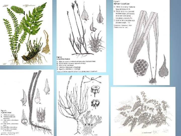 Clasificación Las Pteridophyta son un grupo de plantas, en esta era geológica, relativamente pequeña (10000 especies), un gran número de éstas ahora se conocen solo por sus restos fósiles. En la bibliografía se habla de Pteridophyta y especies relacionadas. En nuestro actual conocimiento las especies relacionadas son las más primitivas entre las cuales se encuentran aquellas que conforman la familia Lycopodiaceae, con sus géneros Huperzia, Lycopodiella y Lycopodium; las especies que conforman la familia Equisetaceae, con su género Equisetum. Las mas evolucionadas son los helechos, un grupo de plantas grande y comprende varias familia, de las cuales solo estudiaremos a las familias Pteridaceae con un género importante, Adiantum ; la familia Polypodiaceae, con sus géneros Campyloneurum, Niphidium, y Polypodium