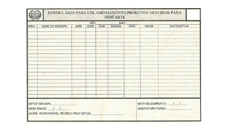 AQUISIÇÃO • Instituições públicas: Lei 8. 666/93 (Licitação) e Lei 10. 520/02 (Pregão) 1. Edital: instrumento (especificações técnicas) 2. Sistema de registro de preço: firma com fornecedor um preço pelo produto em um período de um ano. • Instituições privadas 1. Cadastro prévio dos Fornecedores 2. Número mínimo de cotação 3. Definição dos prazos de entrega e pagamento 4. Conhecimento dos preços praticados no mercado Fonte: CFF, 2012