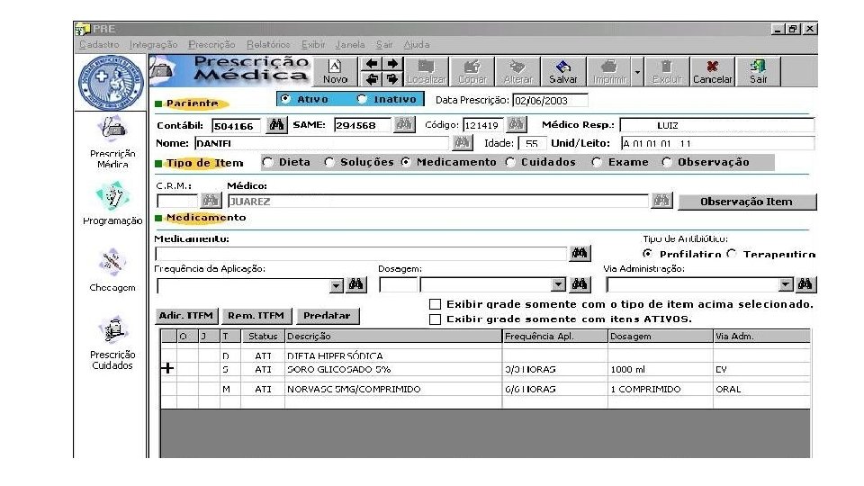 ANÁLISE DE PRESCRIÇÃO • Deve se considerar 1. Identificação do indivíduo: nome, registro, sexo, idade 2. Aspectos do indivíduo: alergias e medicamentos de uso prévio 3. Aspectos da administração dos medicamentos: reconstituição, diluição, tempo de infusão, estabilidade e incompatibilidade, via correta 4. Dose: adequada para indicação terapêutica, dose máxima diária, ajuste de dose 5. Frequência: intervalo correto e aprazamento adequado 6. Medicamento: disponibilidade, padronização, indicações, contraindicações e interações medicamentosas/alimento/exames laboratoriais Fonte: CRF-SP, 2015