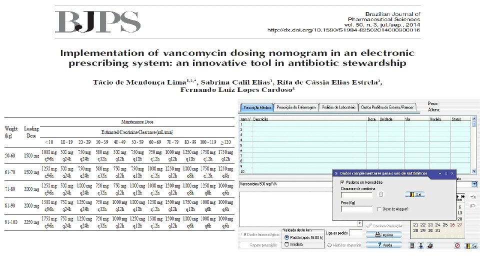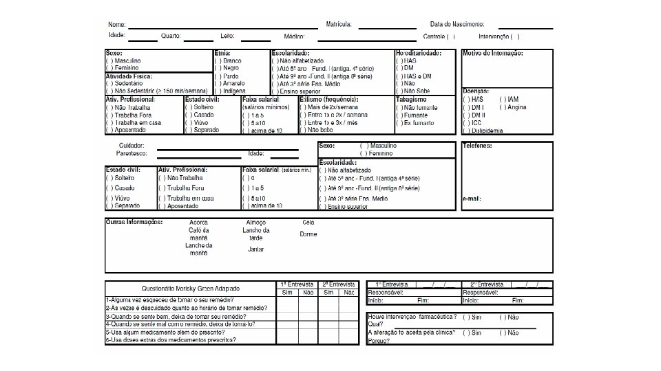 Exemplos de Intervenções Farmacêuticas 1 -Solicitação de correção de dose e posologia prescritas IF devido a problemas na prescrição $Dose inexistente (furosemida 20 mg) $Posologia inadequada (mononitrato de isossorbida, furosemida) 2 -Solicitação de diminuição de dose de medicamentos envolvidos nas interações IF devido a risco de interação medicamentosa com avaliação de risco (D) - consideração de troca de medicação medicamentos envolvidos: sinvastatina, amiodarona, diltiazem, varfarina, anlodipino 3 -Solicitação de prescrição de medicamentos de uso contínuo IF devido a falta de prescrição de uso contínuo sinvastatina, levotiroxina, alopurinol, AAS, varfarina, total retirada de antihipertensivos, enalapril $ Digoxina 4 -Solicitação de formulário especial para tratamento de dislipidemia v atorvastatina 5 -Solicitação de complementação de informações em “Medicação” no Resumo de alta Muitas vezes: ð sem dose ð sem posologia ð sem o próprio medicamento prescrito ou com duplicata de medicamentos ðImpossibilidade de rastreabilidade 6 -Solicitação de troca de medicamento contra indicado v metformina - Cr = 1, 8 mg/dl v diltiazem