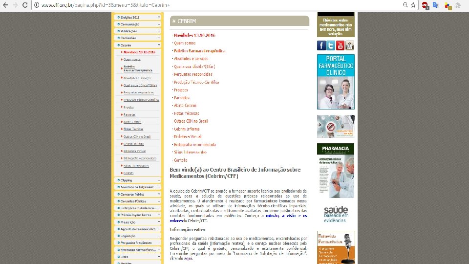 CENTRO DE INFORMAÇÕES DE MEDICAMENTOS (CIM) • É o local que reúne, analisa, avalia e fornece informação sobre medicamentos, visando o seu uso racional (Vidotti et al. , 2000). Fonte: CFF, 2010