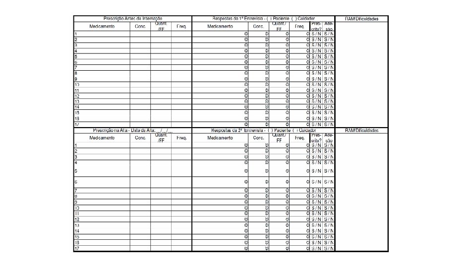 Passo 1: Passo 2: • Medicamentos com discrepância intencional • Medicamentos sem discrepância Revisão da farmacoterapia