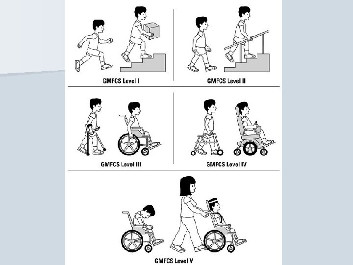 2. Intensidade moderada n n n Criança apresenta limitações funcionais em todo corpo como § Caminhar § Sentar § Modificar posturas § Usar as mãos § Falar São incapazes de acompanhar o desenvolvimento motor para idade normal com suporte terapêutico Equipamentos podem permitir participação em atividades relacionadas à idade