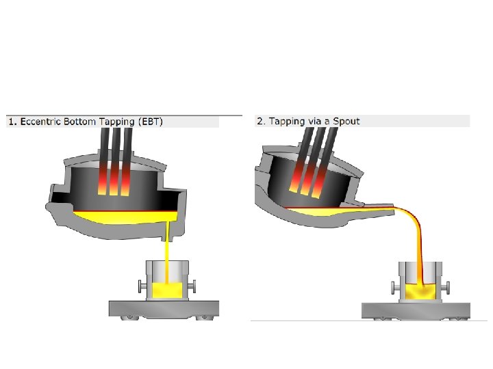 Escória Espumante (cont. ) • O gás CO resultante é crítico para obtenção de uma escória espumante; • Durante a formação de escória espumante, a escória pode transbordar para fora do forno pela porta de escória. • A geração de CO é fundamental também para remoção de nitrogenio e hidrogenio e inclusões óxidas de escória presentes no banho.