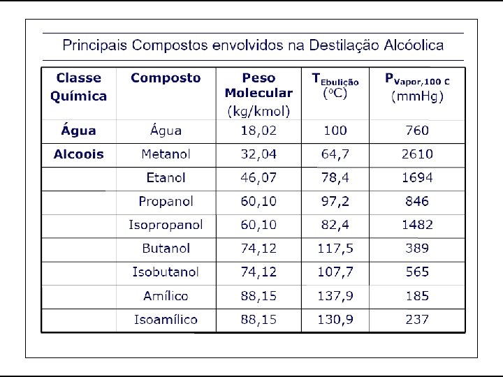 1. DESTILAÇÃO 1. 1. CONSIDERAÇÕES TÉORICAS P Q p q , onde: P = quantidade de álcool (vinho) Q = quantidade de água (vinho) p = quantidade de álcool (destilado) q = quantidade de água (destilado)