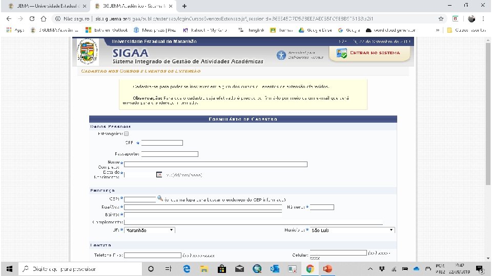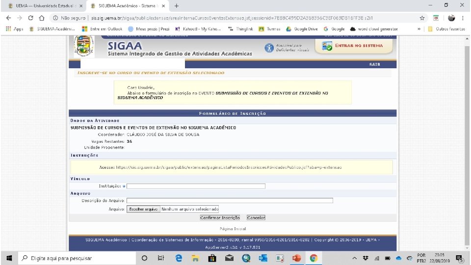 INSCRIÇÃO DOS PARTICIPANTES http: //sis. sig. uema. br/sigaa/public/home. jsf