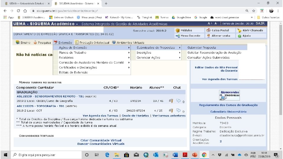 Universidade Estadual do Maranhão Pró-Reitoria de Extensão e Assuntos Estudantis Coordenação de Atividades Extracurriculares SUBMISSÃO DE CURSOS E EVENTOS DE EXTENSÃO NO SIGUEMA ACADÊMICO São Luís/MA Setembro/2019