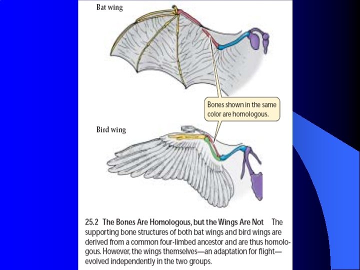 • 2. Caracteres ou características primitivas e derivadas: base da filogenia • Assim, uma característica que difere do ancestral é dito derivada. Os sistematas devem inferir o estado do caractere no ancestral e determinar como foi modificado nos descendentes. • Caracteristica homoplásicas são semelhantes, mas não por ancestralidade. • A evolução convergente pode levar a características semelhantes que não são derivadas dos mesmos ancestrais, mas resultam de pressão seletiva semelhante em grupos distintos. • Por exemplo, asas de pássaros e morcegos cujos ossos são homólogos, mas as estruturas em si não. •
