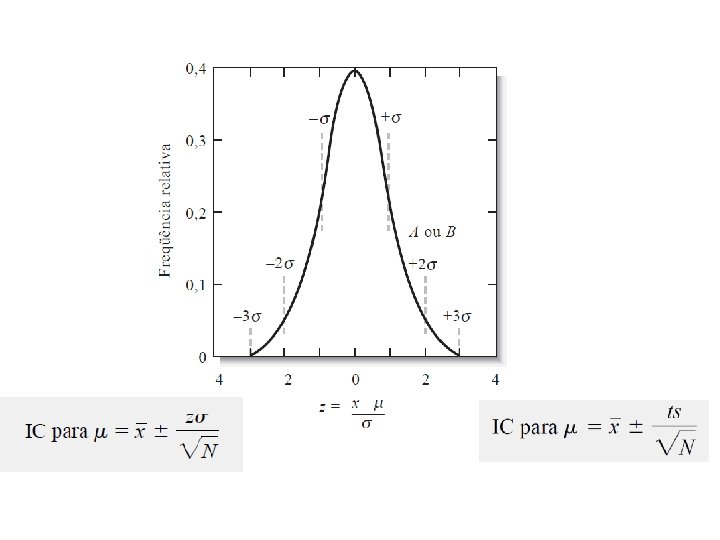 Intervalo de Confiança • Intervalor de confiança (IC) faixa de valores entre os quais se espera que a média da população (µ) esteja contida com uma certa probabilidade • Nível de confiança (NC) probabilidade de que esteja em um certo intervalo.