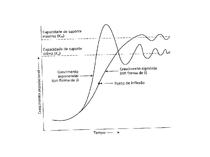 CURVA DE CRESCIMENTO REAL DE UMA POPULAÇÃO No de indivíduos Tamanho populacional máximo suportado pelo ambiente Curva de potencial biótico Resistência do meio Curva de crescimento real Tempo Representação sem escala