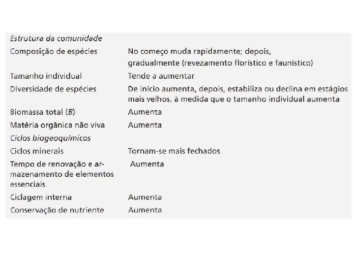 Resiliência • Capacidade de recuperação rápida após perturbação (Carpenter et al. , 2001) • Capacidade de um sistema manter-se estável (Holling, 1973) • Velocidade em que a comunidade retorna a seu estágio inicial • A maior resiliência do ecossistema está associada a com a maior disponibilidade de recurso, condições ambientais mais favoráveis para crescimento e reprodução dos organismos • Ambientes de menor produtividade tem menor resiliência