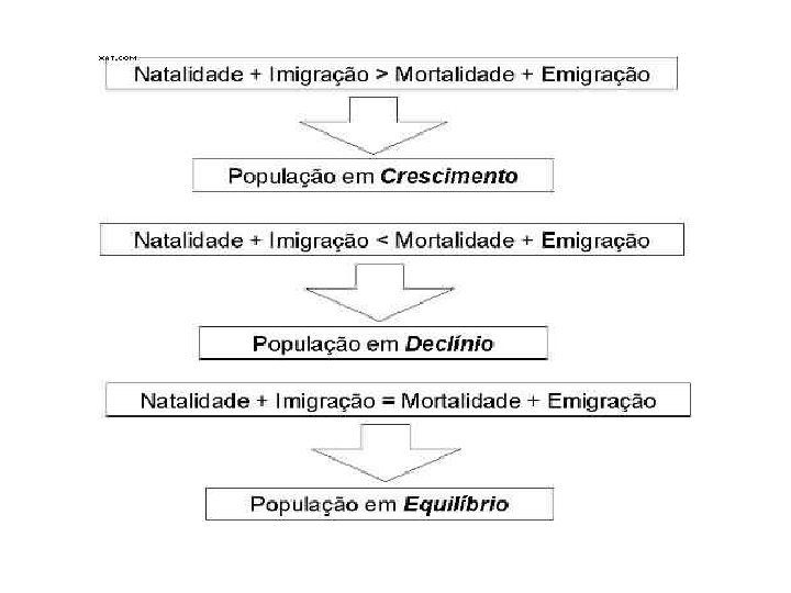 Dinâmica de População O número de indivíduos pode variar modificando o tamanho das populações. Os principais fatores são: - emigração - imigração - natalidade - mortalidade