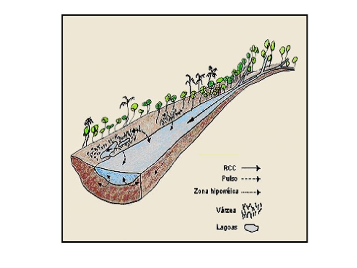 Teorias Ecológicas Aplicadas a Rios • Pontos de Vistas: - Hidrólogos - Ecólogos • Teria do rio contínuo (Vannote et al. , 1980) • Conceito de pulsos de inundação (Junk et al. , 1981) • Característica em comum da unidimensionalidade, fator longitudinal ou lateral • Sistemas lóticos são tetradimensionais, possuem componentes laterais, verticais, longitudinal e temporal (Ward 1989) • Componente dimensão conceitual humana (Boon, 1992)