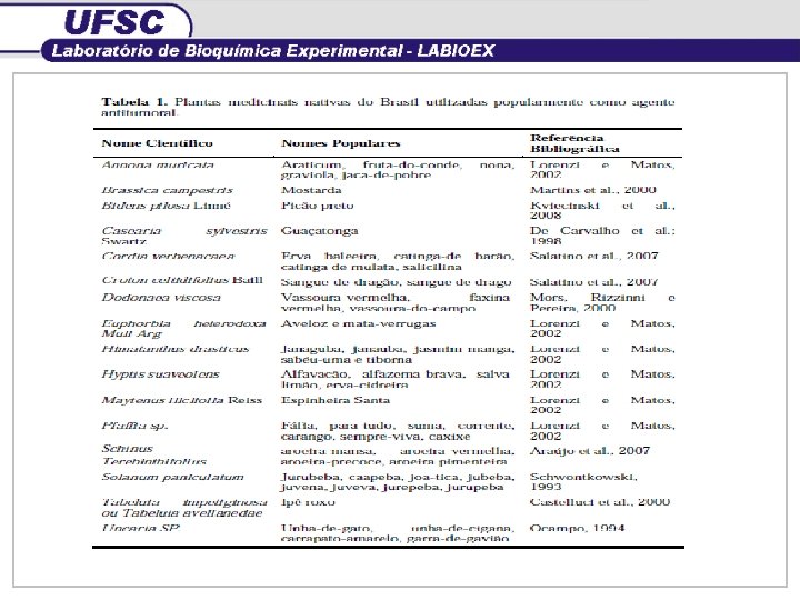 ü Importante Biodiversidade Isolamento de várias substâncias com potencial terapêutico Potencial antitumoral de plantas brasileiras é pouco explorado ESTRATÉGIA Etnofarmacognosia Uso Popular (BLOCK et al. , 1998)