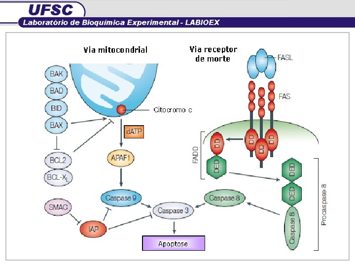3. Correlação entre câncer e apoptose ü Morte celular programada; üHomeostase celular e tecidual; ü Condições patológicas; üAtivação de caspases. (KERR; CURRIE; WYLLIE, 1972; ISRAELS, 1999; EDINGER, THOMPSON, 2004)