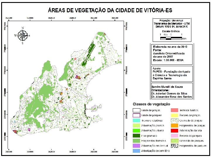 Universidade Federal do Espírito Santo Centro de Ciências Agrárias Programa de Pós-Graduação em Ciências Florestais MAPEAMENTO E AVALIAÇÃO DA VEGETAÇÃO URBANA DA CIDADE DE VITÓRIA – ES, UTILIZANDO GEOTECNOLOGIAS Mestranda: Samira Murelli de Souza Orientador: Prof. Dr. Aderbal Gomes da Silva Co-orientador: Prof. Dr. Alexandre Rosa dos Santos