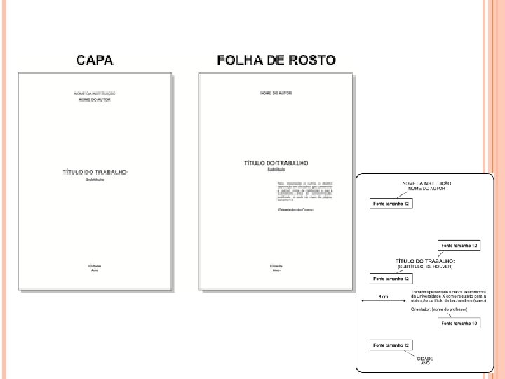 3. 1 Elementos Pré-Textuais 3. 1. 1 Capa (obrigatório): proteção externa do trabalho e sobre a qual se imprimem as informações indispensáveis à sua identificação. 3. 1. 2 Folha de Rosto (obrigatório): folha que contém os elementos essenciais à identificação do trabalho.