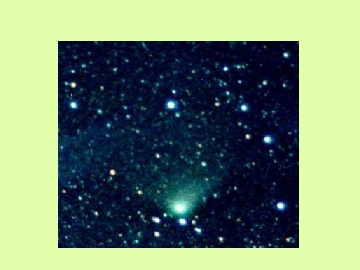 COMETAS § Corpos pequenos, frágeis e irregulares, compostos de uma mistura de grãos não-voláteis e gases congelados. § Têm órbitas altamente elípticas, que os trazem para muito perto do Sol e os jogam para além da órbita de Plutão. § Quando desviados para o interior do sistema solar, não sobrevivem mais do que 1000 passagens periélicas.