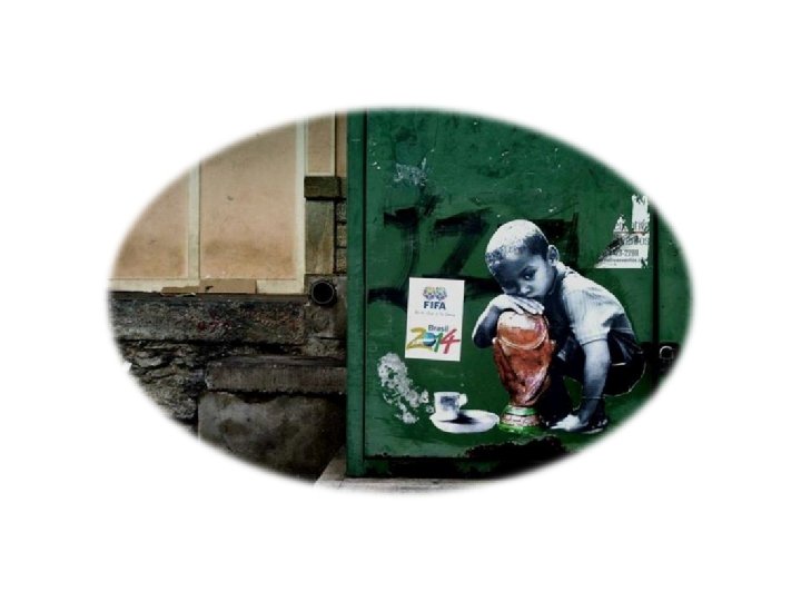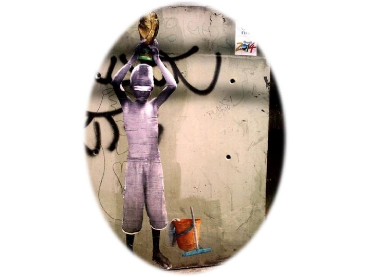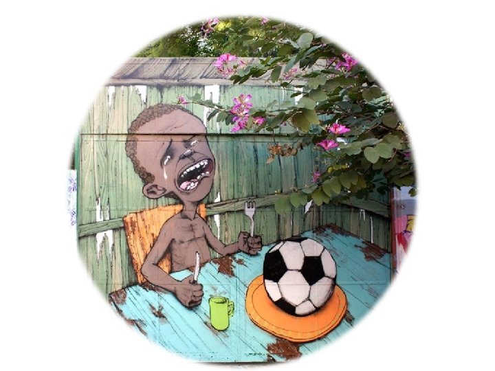 REFLEXÃO: • Qual a relação desses grafites com a propaganda da Copa do Mundo? • Para que serve o grafite? E a propaganda? • Você acha que esses grafites cumprem alguma função decorativa para a Copa do Mundo na cidade? • Quem está representado nesses grafites? Quem era representado na propaganda? • Quais das intervenções (os grafites ou a propaganda) você acha que provoca maior efeito na mudança do pensamento de quem passa pela cidade? • Quais das duas intervenções você acha mais realista?
