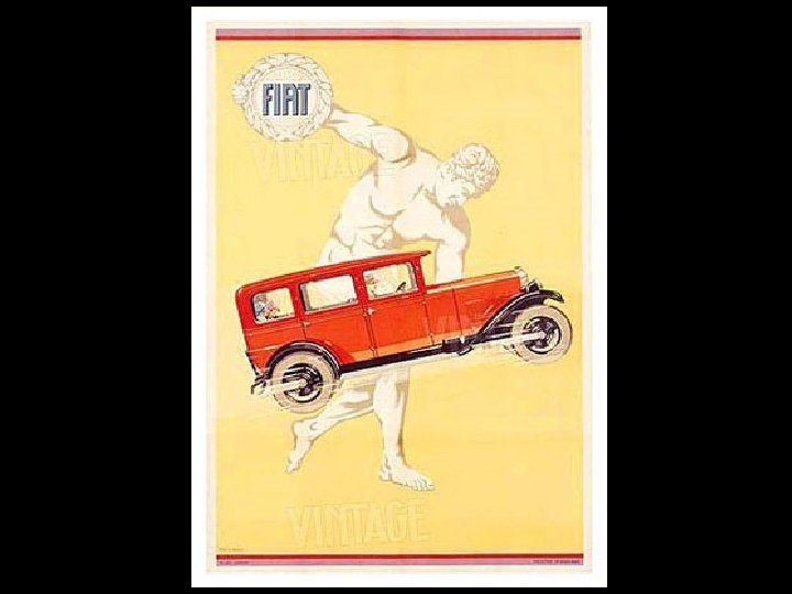 • I manifesti Fiat sono delle vere e proprie opere d’arte, in pratica, perché in più di un caso recano firme famose, da Giorgio De Chirico (vedi manifesto affianco) a Mario Sironi.