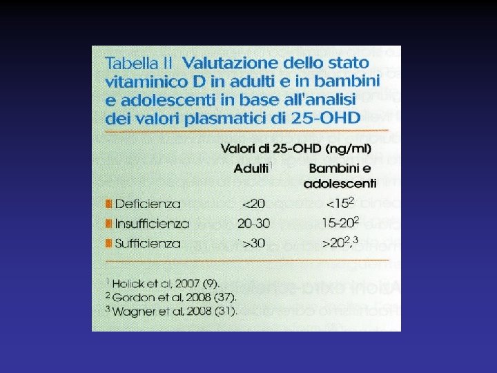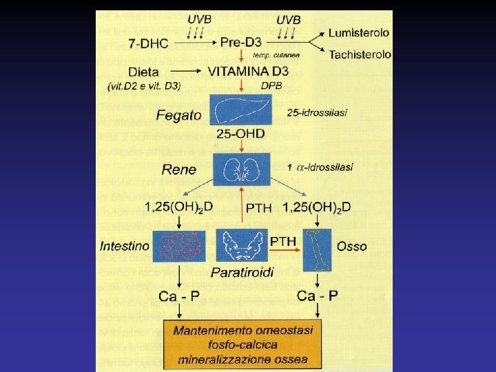 Azioni extrascheletriche della Vit. D 1. Regola la crescita cellulare controllando geni responsabili della proliferazione e della differenziazione cellulare, dell’apoptosi e dell’angiogenesi 2. Svolge un’azione immuno-modulante e di promozione dell’immunità innata 3. La deficienza di vit. D è stata associata a un aumento del rischio di sviluppare diabete tipo 2, schizofrenia, depressione e malattie cardiovascolari 4. Encefalo, seno, colon, prostata e cellule dell’immunità innata esprimono il recettore della vit. D e l’ 1 -alfaidrossilasi