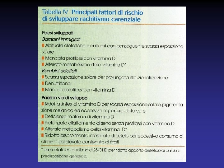 RACHITISMO CARENZIALE Ø Il rachitismo carenziale è una delle patologie non trasmissibili dell’infanzia più comune nel mondo Ø Il rachitismo carenziale continua ad essere descritto non solo nelle zone temperate, ma anche nei paesi dove l’irragiamento solare è maggiore come Australia e Stati Uniti e nonostante un buon irragiamento solare anche nei paesi in via di sviluppo come il Nord Africa, l’Etiopia, la Nigeria, la Turchia • Canada 2007: 2, 9: 100. 000 tra 0 e 18 anni (Ward. LM et al. , CMAJ) • Danimarca 1995 -2005: come sopra (Beck-Niels SS et al. , Eur J Endocrinol) • Italia 1992 : 4, 3% tra 4 e 31 mesi (Saggese G et al. , Minerva Pediatr)